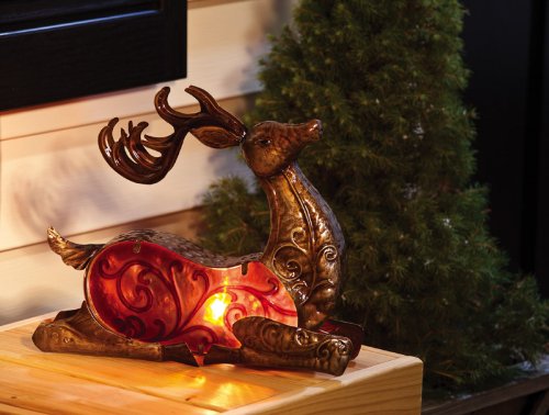 Poinsettia Magesty, Reindeer Electric Lamp, Statuary,Glass and Metal,13.5x4.5x10.5 Inches Feature